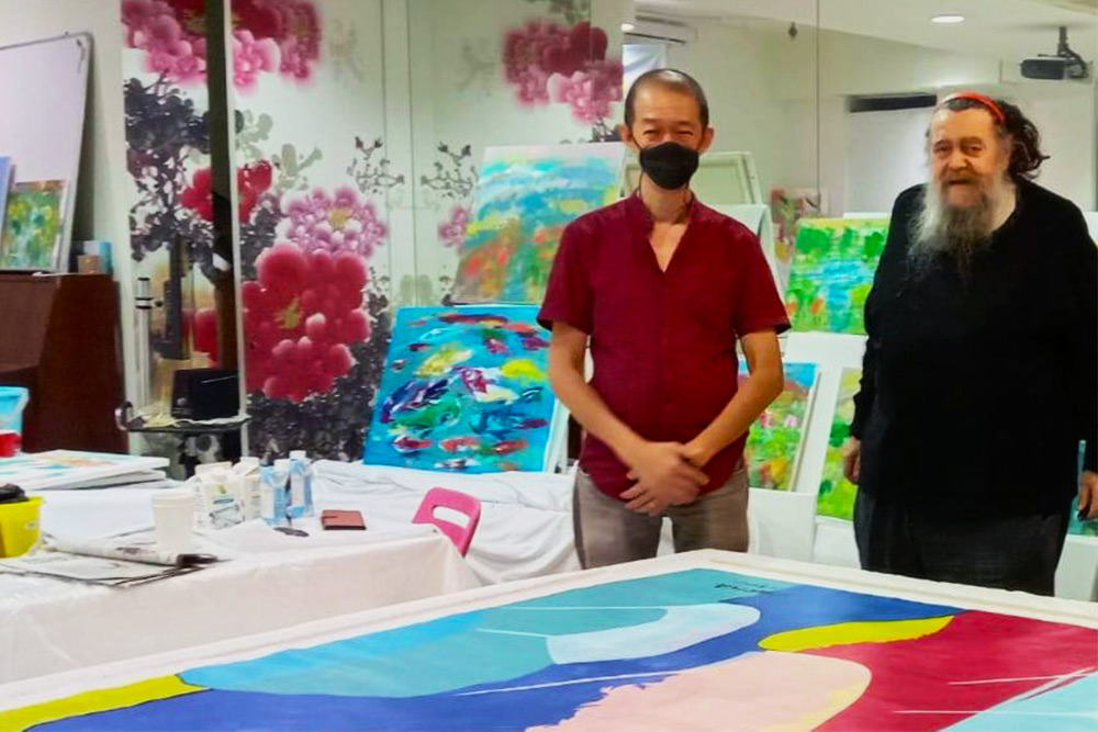 国际艺术家德拉戈·马林·薛林纳在滞留新加坡期间,仍锲而不舍地绘画创作,对于艺术的热爱让他忘却了身体的病痛。(摄/ 曾美珍)